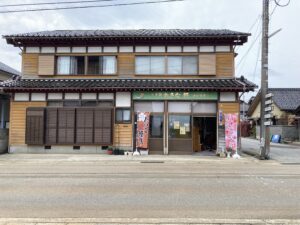 1960年(昭和35年)祖父が京都の和菓子屋「翁軒」で修行をし暖簾をわけてもらい、珠洲市に住居兼店舗「おきな軒」をオープンしました。現在、京都の翁軒は閉業してしまいました。この写真は1号店目です。懐かしい写真です。このままお店が続いて行くと思った矢先、思わぬことが起きました… 次回に続く…