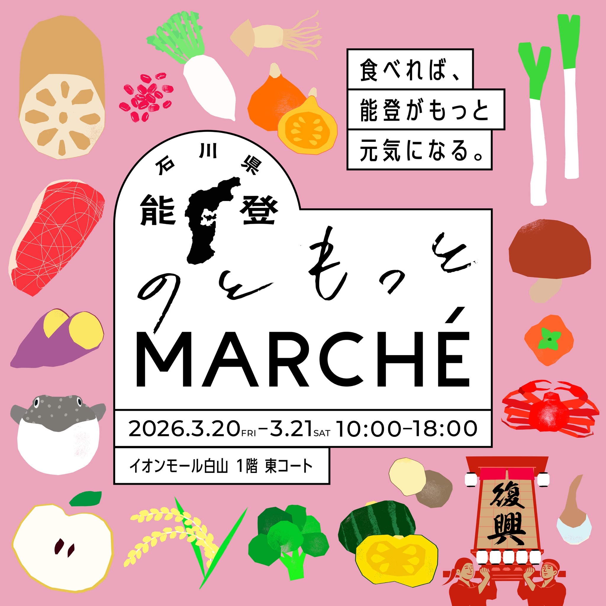 3月20・21に行われる。のともっとMARCHEに2年連続で出店することが決まりました。去年はたいこ饅頭を販売しましたが、今年はミニたいこ饅頭も販売します。ミニたいこ饅頭は13種類の味を用意する予定です。3連休ということもあり、多くの方のご来店が予想されますので、ご購入をご検討の方はお早めにお買い求めください。