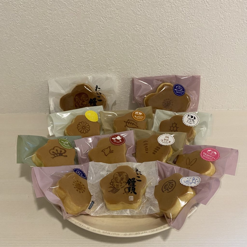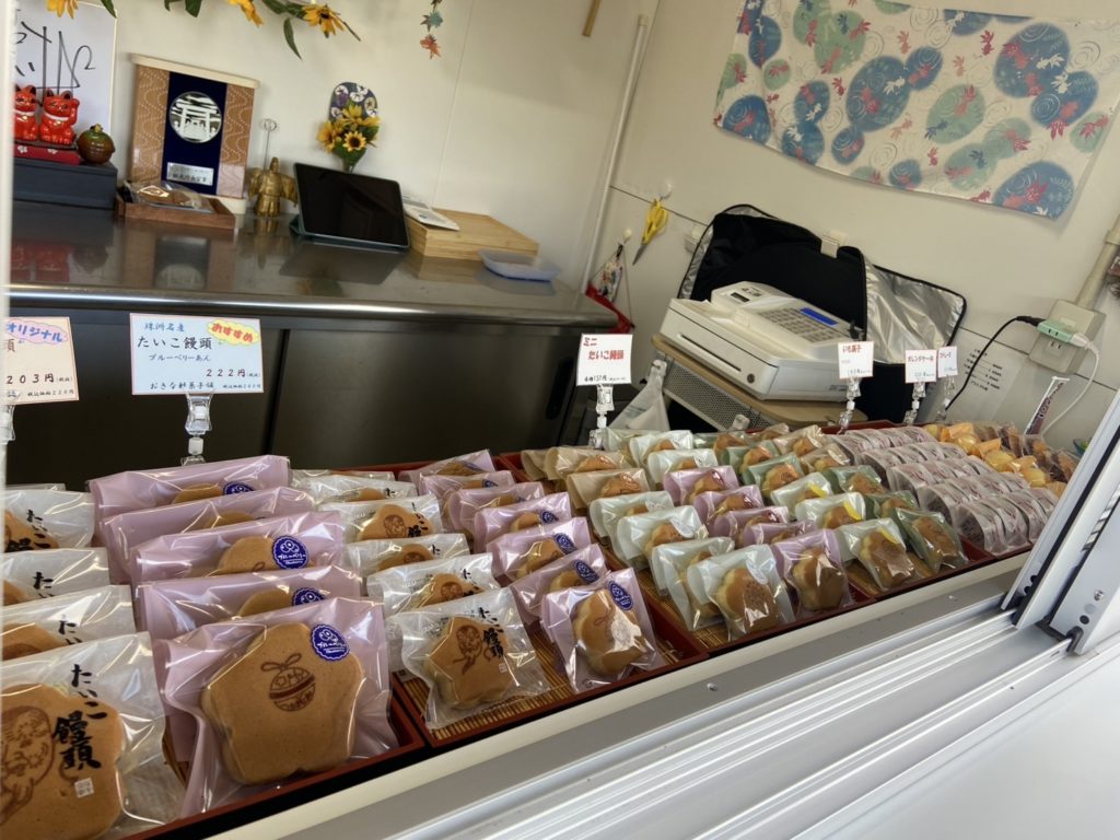 たいこ饅頭といも菓子をメインに和洋菓子10種類ほど販売しています。